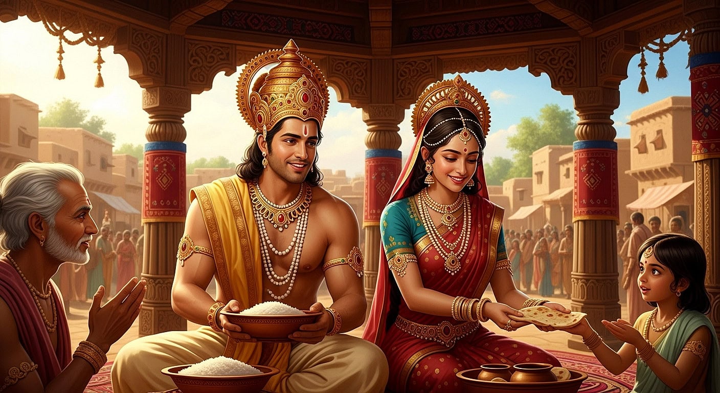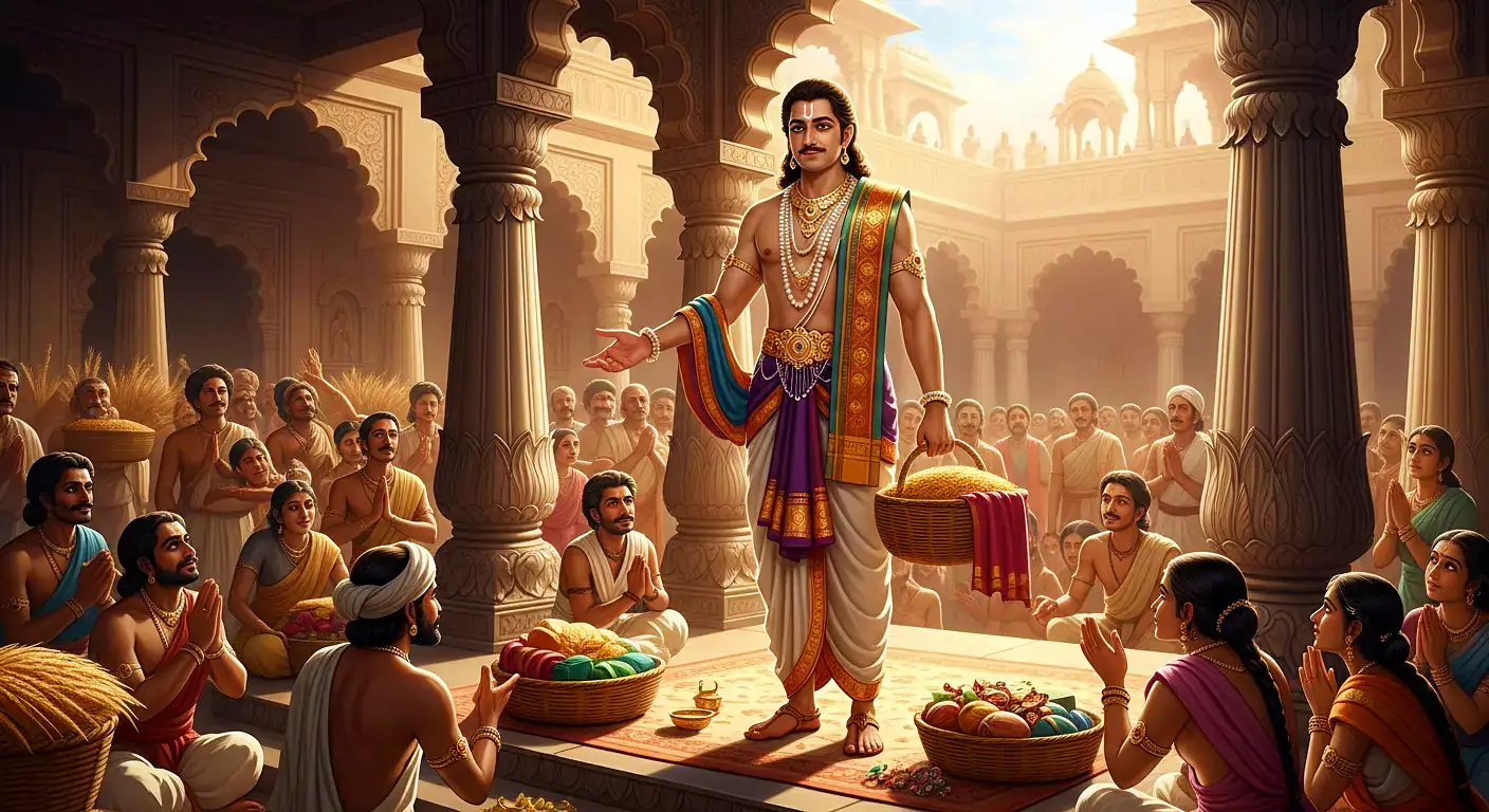 Once upon a time a king named Bharata reigned at Roruva in the kingdom of Sovira. He practised the ten royal virtues, won the people by the four elements of popularity, stood to the multitude like father and mother and gave great gifts to the poor, the wayfarers, the beggars, the suitors and the like. His chief queen Samuddavijaya was wise and full of knowledge. One day he looked round his alms-hall and thought,