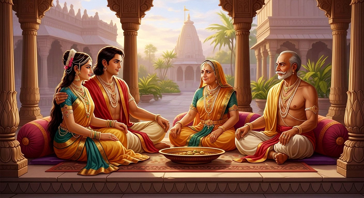 The messengers on hearing this found the brahmin family, and chose Sammillabhāsinī for the prince’s bride. She sent a message to her parents, saying,