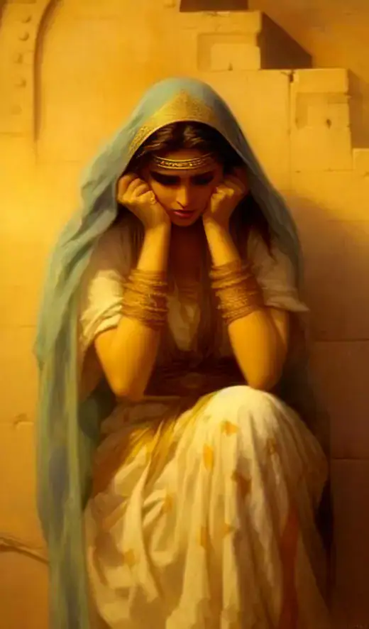 So she sold her jewellery and with the money thus obtained she had a gold brick made, one cubit long, half a cubit wide and four fingers thick. She then took the gold brick together with orpiment and eight lotus stalks and went where the shrine was situated.