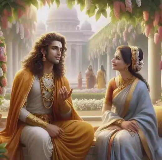 Both of them spent the night without being able to sleep throughout all three watches lest one should unconsciously touch the other. The garlands remained unwithered. By day, they behaved like brother and sister even without a smile tinged with pleasure.