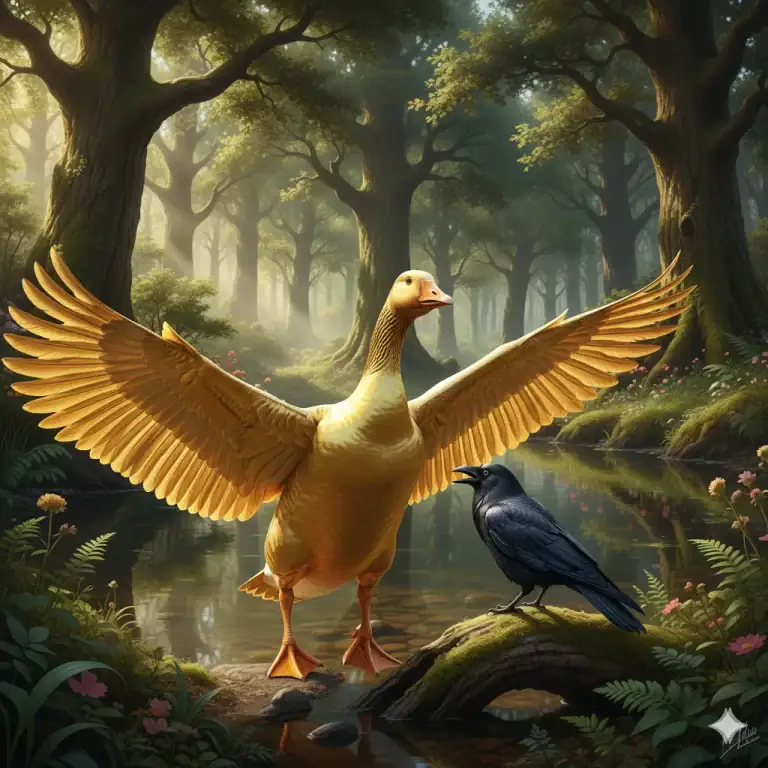 Then the Ruddy Goose recited the remaining stanzas, showing the reason for his ugly colour and declaring righteousness: