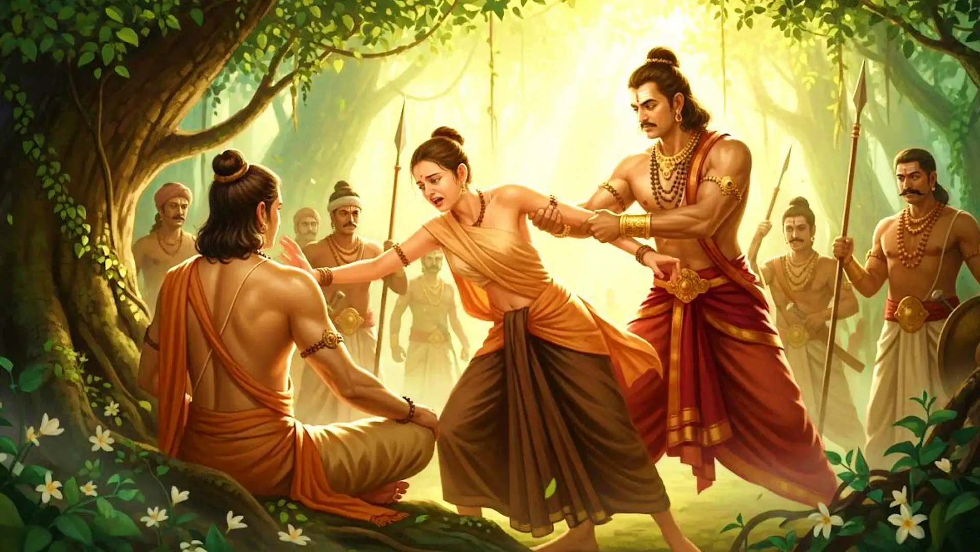 “බ්රාහ්මණය, යමෙක් විශාල ඇස් ඇති, මද සිනහ සහිතව කථා කරන ඔබගේ මේ ප්රියාවිය බලහත්කාරයෙන් ගෙන යන්නේ නම් කුමක් කරන්නෙහිද?”