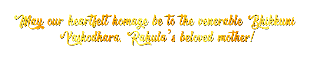 May our heartfelt homage be to the venerable Bhikkuni Yashodhara, Rahula’s beloved mother!