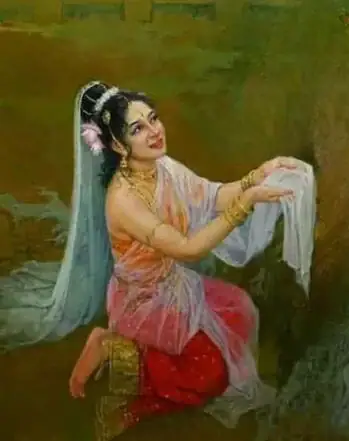 “යම් සත්යයකින් නුවණ නැති ඛණ්ඩහාල පාපකර්මයක් කෙරේ ද, ඒ සත්යයෙන් මාගේ සැමියා සමග එක් වේවා”