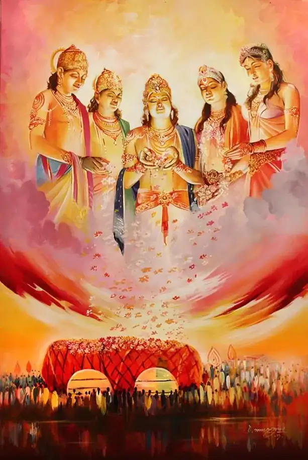“සියලු දෙනා බන්ධනයෙන් මිදුණු කල්හි එදා එහි රැස්වූ යම් කෙනෙක් වූවාහු නම් ඒ සියලු දෙනාද රැස්වූ දිව්ය කන්යාවෝ ද පිළිහිස සිසැරූහ”