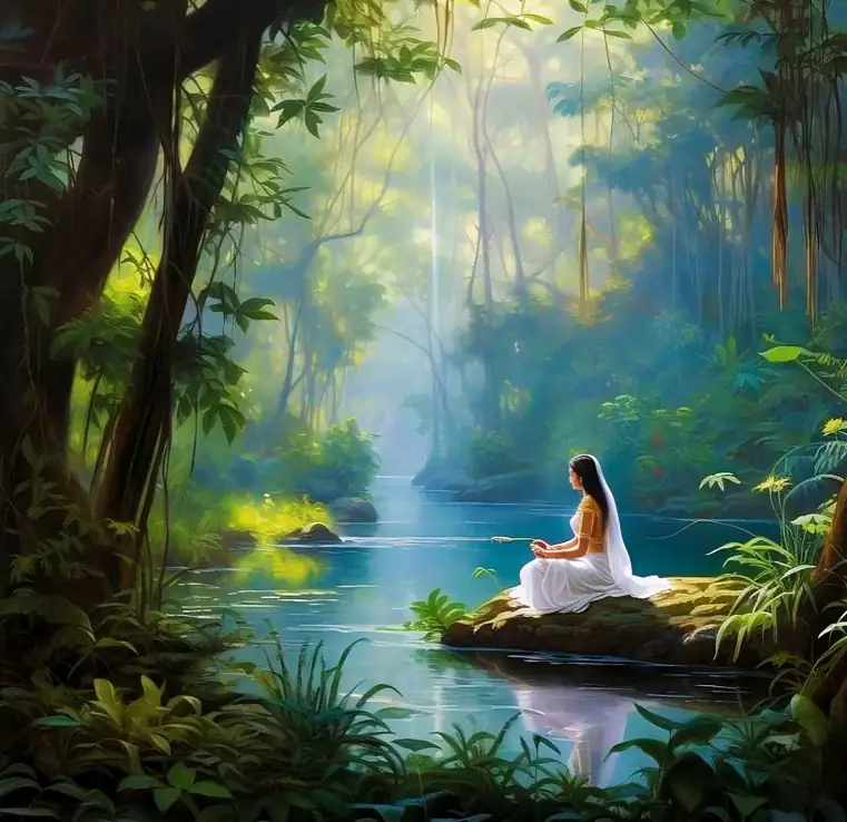 එහිදී ගසක් පාමුල භාවනානුයෝගීව වැඩ හිඳින තරුණ භික්ෂුවක් දුටු ඇය මෙසේ සිතුවා ය.