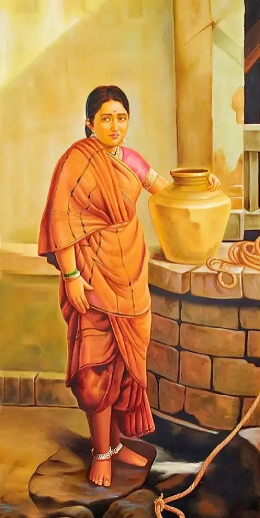 ආරාධනය කිරීමෙන් පසු, ඇය තම වතුර කළය අතට ගෙන, ආපසු නගරයට නොයා, හැරී පැන් තොට වෙත ගියා ය. ගොස් එහි කළ දාසියන් රැස් කළා ය. ඇය ඔවුන්ට මෙසේ කීවා ය.