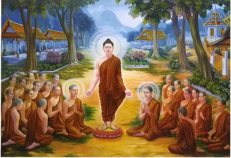 මෙසේ සෘද්ධි ප්රාතිහාර්යයෙන්ද අනුශාසනී ප්රාතිහාර්යයෙන්ද දෙව් බඹ සියලු සත්වයන් තථාගතයන් වහන්සේ පිළිබඳ ශ්රද්ධාවෙහි පිහිටුවා, අපගේ බුදුරජාණන් වහන්සේ නිහඬ වූ සේක. නිහඬව රුවන් සක්මනෙහි සක්මන් කරන්නට පටන් ගත් සේක. බුදුරජාණන් වහන්සේ මෙසේ සක්මන් කරමින් සිටින අතරතුරදී, ලෙන් දොර අසළ සිට ගර්ජනා කරන බලවත් සිංහ රාජයෙකු මෙන්, ගිගුම් දෙන අහස මෙන්, අනිත්ය ප්රතිසංයුත්ත ධර්මය, සත්වයා විමුක්තියට පමුණුවන චතුරාර්ය සත්ය ධර්මය දේශනා කළ සේක.
