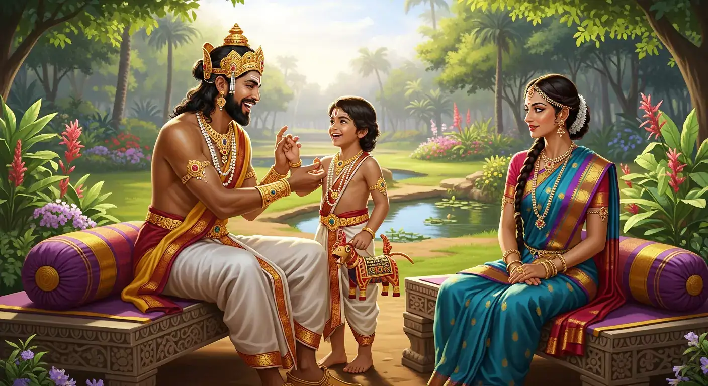Then he thought to himself, “I will seize the kingdom that belonged to my father “; so he asked his mother “Have you any money in hand? If not, I will carry on trade and make money and seize my father’s kingdom.” “Son, I did not come empty-handed, I have a store of pearls and jewels and diamonds sufficient for gaining the kingdom—take them and seize the throne; do not carry on trade.”