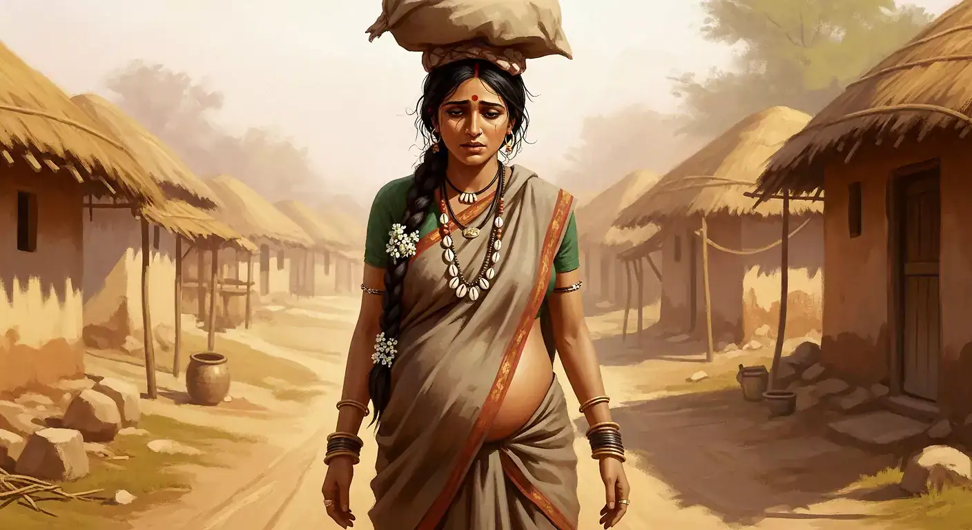 The queen, having learned that he was dead, quickly put her gold and choicest treasures into a basket and spread a cloth on the top and strewed some husked rice over that; and having put on some soiled clothes and disfigured her person, she set the basket on her head and went out at an unusual time of the day, and no one recognised her.