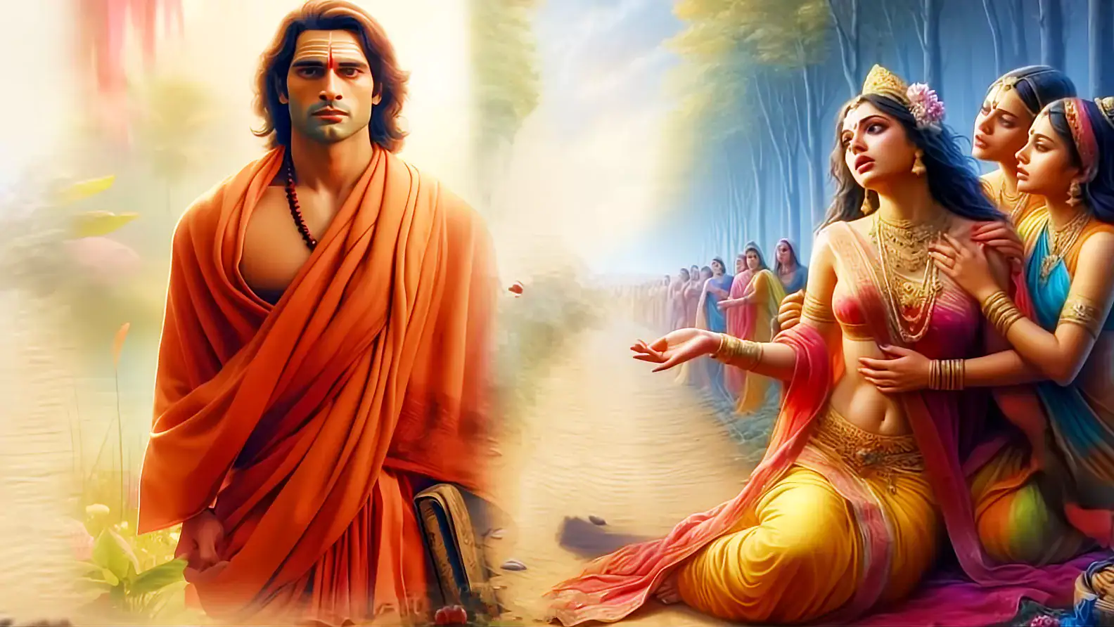 The king saw the incident, and thought to himself, “Sīvalī keeps following me; a wife is the ascetic’s bane, and men blame me and say that even when I have left the world I cannot leave my wife; if this girl is wise, she will be able to tell Sīvalī the reason why she should turn back and leave me. I will hear her story and send Sīvalī away.” So he said to her: