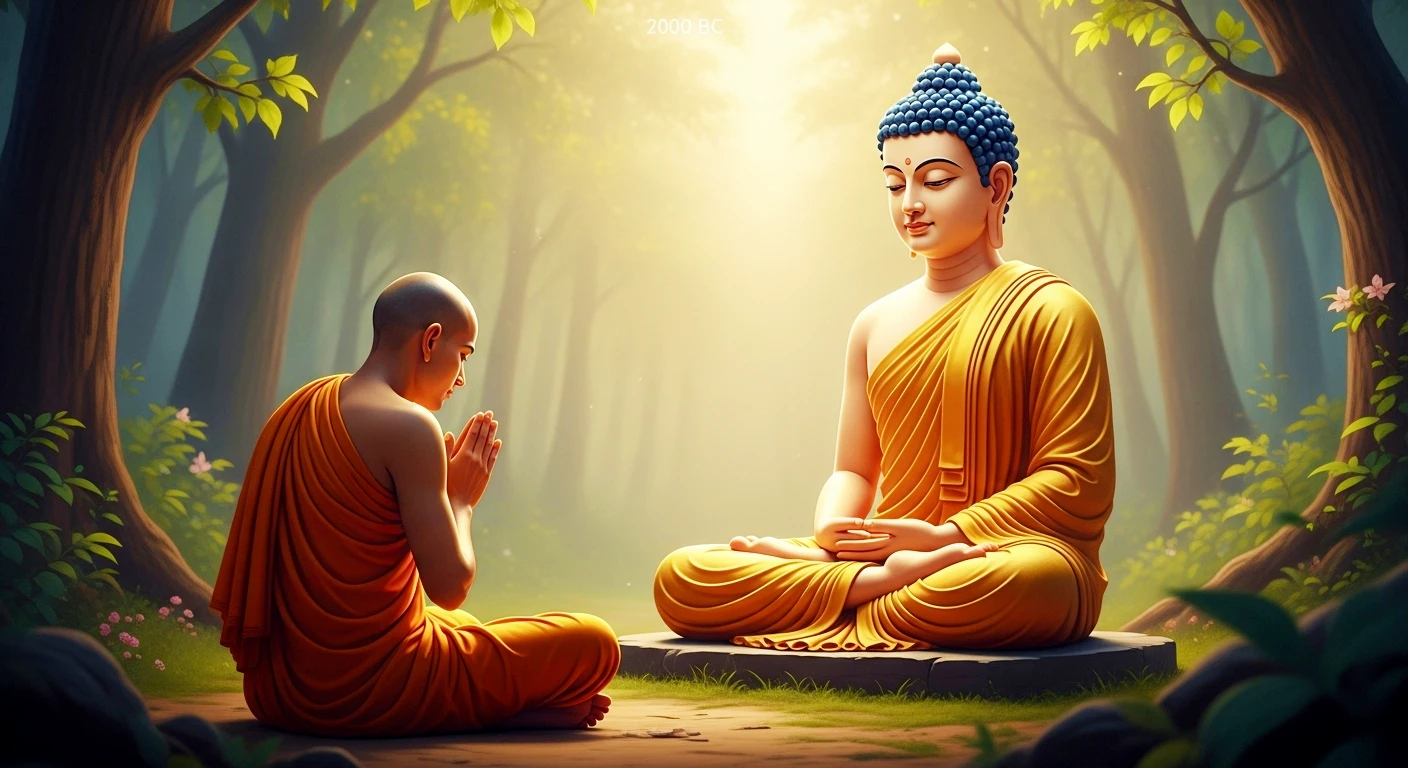 Thereupon, the Blessed One stretched out His hand and said: ‘Etha Bhikkhu, etc.” Instantly, with the call of “Etha Bhikkhu”, the minister and the one thousand royal attendants transformed into full-fledged bhikkhus like senior theres of sixty year’s standing, readily robed and equipped with eight supernaturally created requisites, each in its place, paying homage to the Buddha with due to respect. Their state of minister and royal attendants miraculously disappeared as they were transformed into bhikkhus.