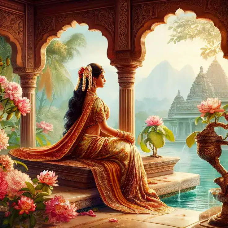 The ruler over the united kingdom of Benares and Kosala in the Ganges Valley was King Pasenadi, the mightiest monarch of his day. At that time he was at war with his neighbour, Ajātasattu, the parricide king of Magadha. The latter had won a battle and King Pasenadi had been forced to retreat. As he was returning to his capital on his horse, just before he entered the city he heard a girl sing in the flower gardens. It was Mallikā, who was singing melodiously because of her joy in meeting the illustrious sage. The king was enchanted by the song and rode into the gardens. Mallikā did not run away from the strange warrior, but came nearer, took the horse by its reins, and looked straight into the king’s eyes. He asked her whether she was already married and she replied in the negative. Thereupon he dismounted, lay down with his head in her lap, and let her console him about his ill luck in battle.