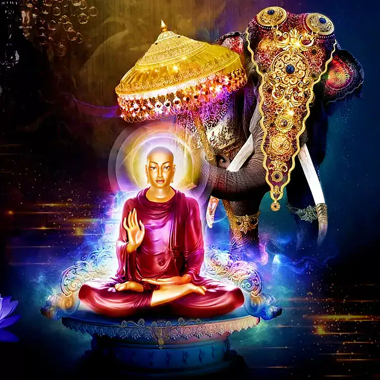 “Have five hundred white umbrellas made; each of five hundred elephants will take hold of one umbrella with its trunk, and stand, sheltering each monk with it.