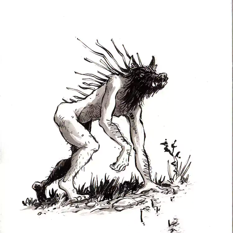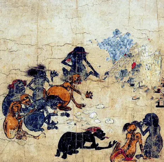I am a ghost, sir. I am suffering in the world of Yama. I have done an evil deed as a human and have been reborn in the world of ghosts. Every morning, I give birth to seven sons and in the evening another seven are born. I eat them all that night. But I will still be hungry. My heart is burning with hunger so much that it is smoking. My mind is never peaceful. I am being tortured and in pain as if burned by fire.