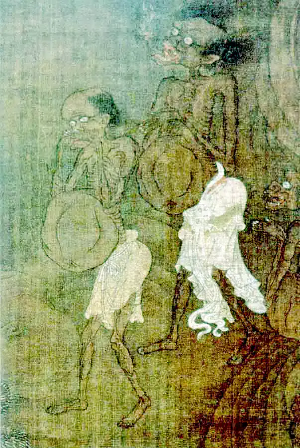 A monk sees a group of gods and another group of ghosts and asks these questions: