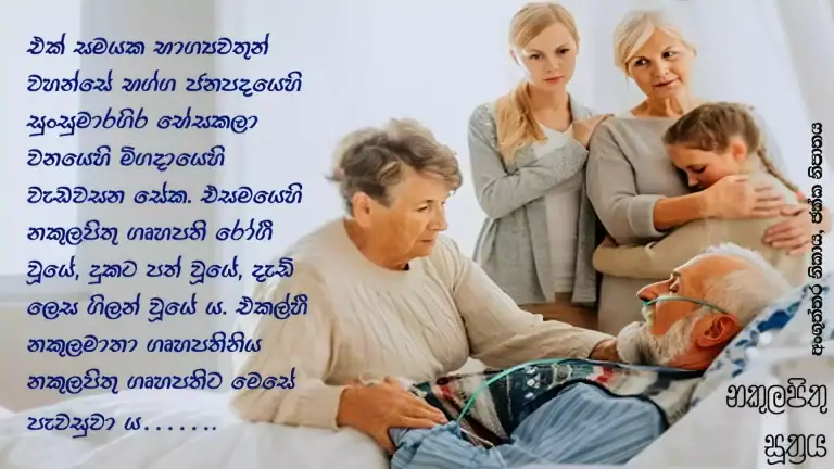 එක් සමයක භාග්යවතුන් වහන්සේ භග්ග ජනපදයෙහි සුංසුමාරගිර භේසකලා වනයෙහි මිගදායෙහි වැඩවසන සේක. එසමයෙහි නකුලපිතු ගෘහපති ත් රෝගී වූයේ, දුකට පත් වූයේ, දැඩි ලෙස ගිලන් වූයේ වෙයි. එකල්හී නකුලමාතා ගෘහපතිනිය නකුලපිතු ගෘහපතියාට මෙය පැවසුවා ය.