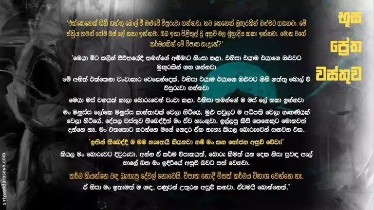 (මසුරුකමින් සිටින ස්ත්රිය ගැන වදාළ දෙසුම)