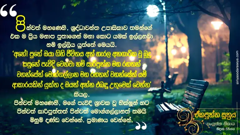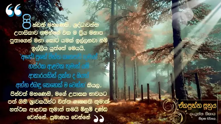 “පුත, දැන් නුඹ පැවිදි වූවොත් දරු නැති ශෝකයෙන් පැවිදි වූවයි කියමින් අනාගතයේදී මිනිසුන් නුඹගේ පැවිද්දට දොස් කියනු ඇත.