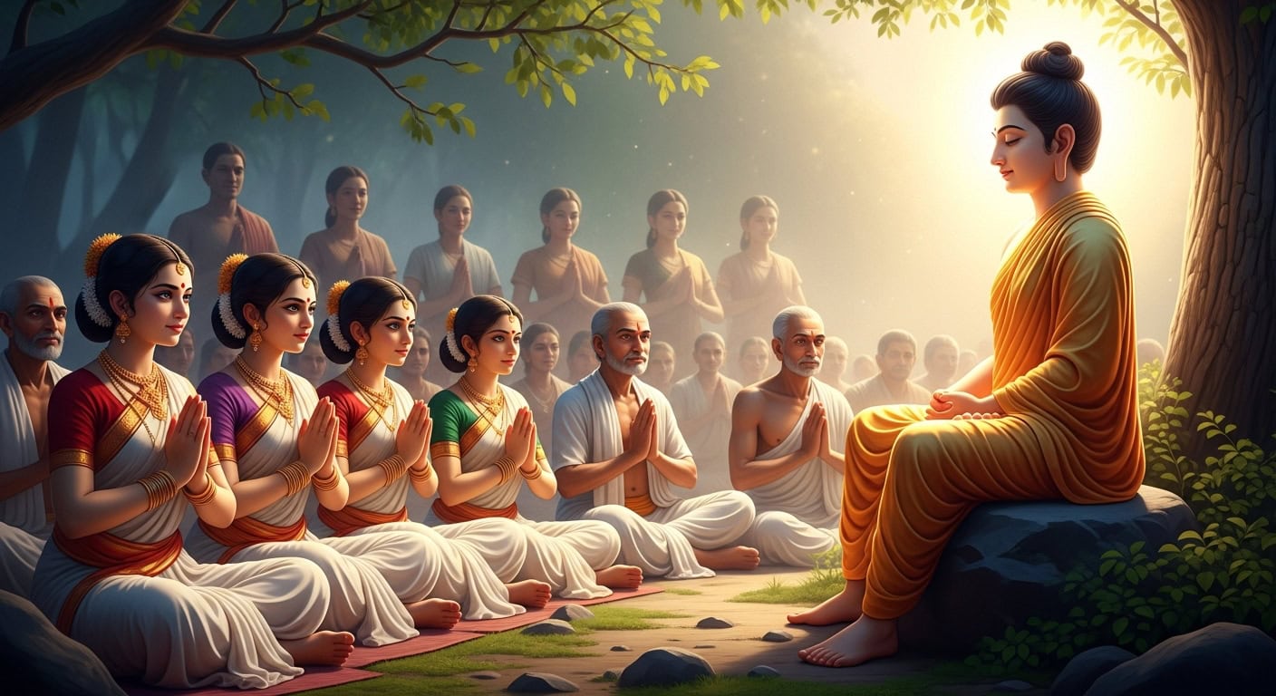 යසෝදරාවෝ ද ගෞතමී බිසව් ද ශාක්‍ය කුල කතුන් ගේ අපරිමිත ගෞරවාදරයටත් සම්භාවනාවටත් ලක් වී සිටියහ. සියළු කතුන්ගේ අනුශාසිකාව වූයේ ද ගෞතමී දේවිය යි. ඕ යසෝදරාවන් හා එක්ව ශාක්‍ය කුලකාන්තාවන් ගේ සමුළුවෙක් සිය මන්දිරයේ ම රැස් කරවූහ. එදින සුදොවුන් නිරිඳුන් ගේ මන්දිරය රූබර රාජකීය ශාක්‍ය ලඳුන්ගෙන් පිරී ගියේ ය. ඒ කාන්තාවන් ගේ ස්වාමිවරුන් බොහෝ දෙනෙක් ද, බොහෝ යොවුන් පුතුන් ද, දැනටමත් ශාක්‍ය මුනිරජාණන් ගේ ශ්‍රමණ ශ්‍රාවකයන් වී හමාර ය. මේ කුලාංගනාවන්ගේ ද ඒකායන පැතුම වූයේ මේ මිනිස් ජීවිතයේ ම ඒ අමරණීය ශාන්තිය උදාකර ගැනීමට ය. ගෞතමී දේවී හැඟීම් බර වූ ගාමිභීර ස්වරයෙනි, සභාව අමතන්නට වූයේ.
