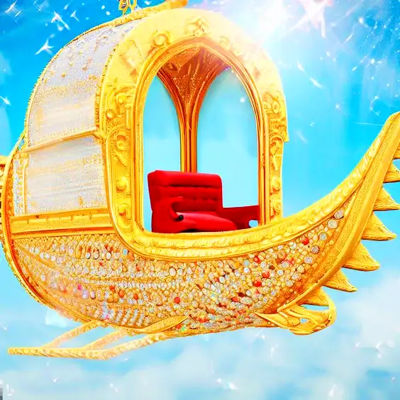 Devata, your divine mansion is a ship with a roof made of gold. It floats on a pond that is filled with lotus flowers. You happily pick those lotus flowers with your own hands.
